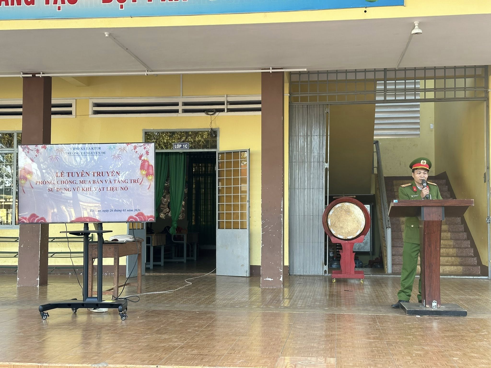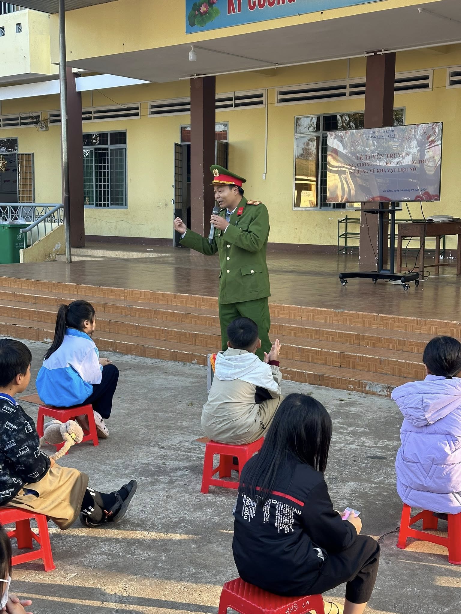 SINH HOẠT DƯỚI CỜ – TUYÊN TRUYỀN PHÒNG, CHỐNG MUA BÁN VÀ TÀNG TRỮ, SỬ DỤNG VŨ KHÍ, VẬT LIỆU NỔ TẠI TRƯỜNG TIỂU HỌC NGUYỄN DU XÃ EA KTUR, TỈNH ĐĂK LĂK.